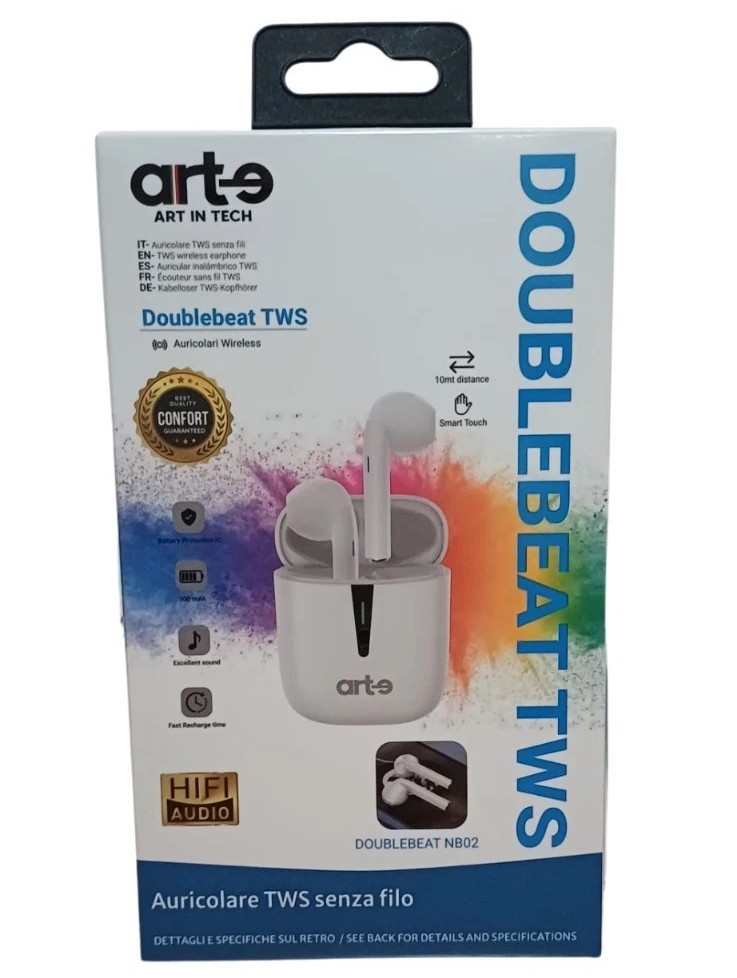Gli Auricolari TWS Arte Bianco offrono libertà totale grazie alla tecnologia wireless e a un design elegante e minimal. Compatti e leggeri, sono perfetti per accompagnarti durante tutta la giornata, dalla musica alle chiamate.